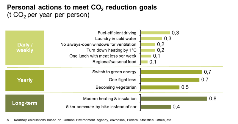 I have to admit that Greta got to me. Perhaps because I also have a daughter some consider to be on the spectrum as well (remember Greta’s hate speech at the UN?…“how dare you”…we get this regularly when we ask our daughter to lay the table). So what does a management consultant do if he wants to take personal action on CO2? Look for a concise, quantitative, prioritized list of key drivers that he can select from (since CO2 footprints differ by country, we looked for German information). There is a ton of information out there, but it is usually in one of the following categories: